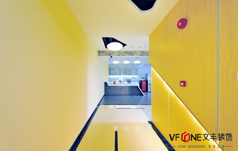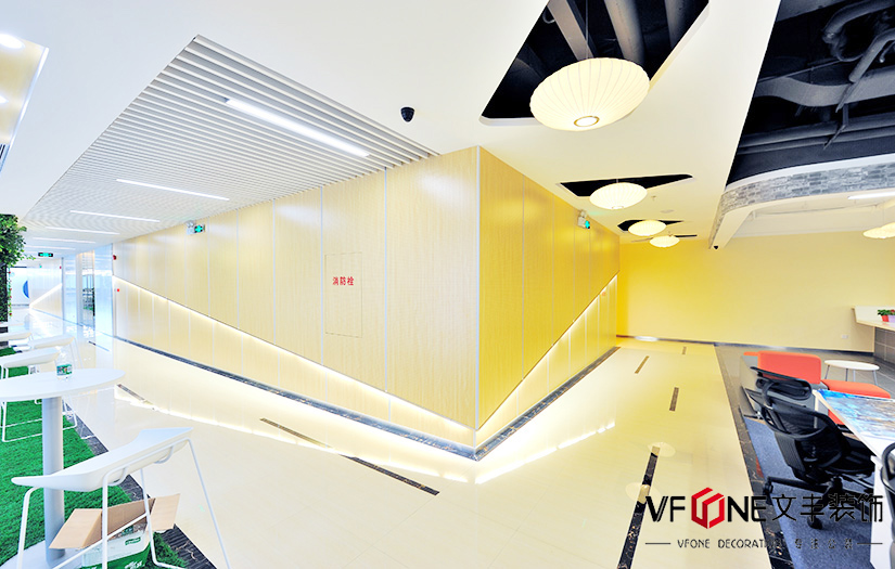 區(qū)別傳統(tǒng)的辦公寫字樓設計,設計師在空間中加入了許多鏤空的形狀,例如吊頂、家具和隔斷的設計的偏向于不規(guī)則形狀居多。而顏色的選擇則是冷暖結合,不同的功能區(qū)設計不同的顏色,布局分明。 除了基本的辦公區(qū),健身房、休閑區(qū)、咖啡廳、娛樂室等等一應俱全,工作之余也可以通過適當的娛樂舒解壓力。