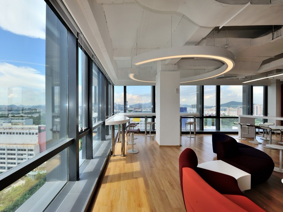 根據(jù)客戶的需求,設(shè)計(jì)師用白色為主色調(diào),朱紅色、橙色、黃色作為調(diào)色在空間中進(jìn)行搭配。以白色為主色調(diào),讓整個(gè)空間呈現(xiàn)現(xiàn)代簡(jiǎn)約的感覺(jué),但過(guò)于單調(diào),設(shè)計(jì)師,紅色、黃色和橙色不僅可以讓整個(gè)空間 “熱鬧起來(lái)”,還凸顯企業(yè)特色。