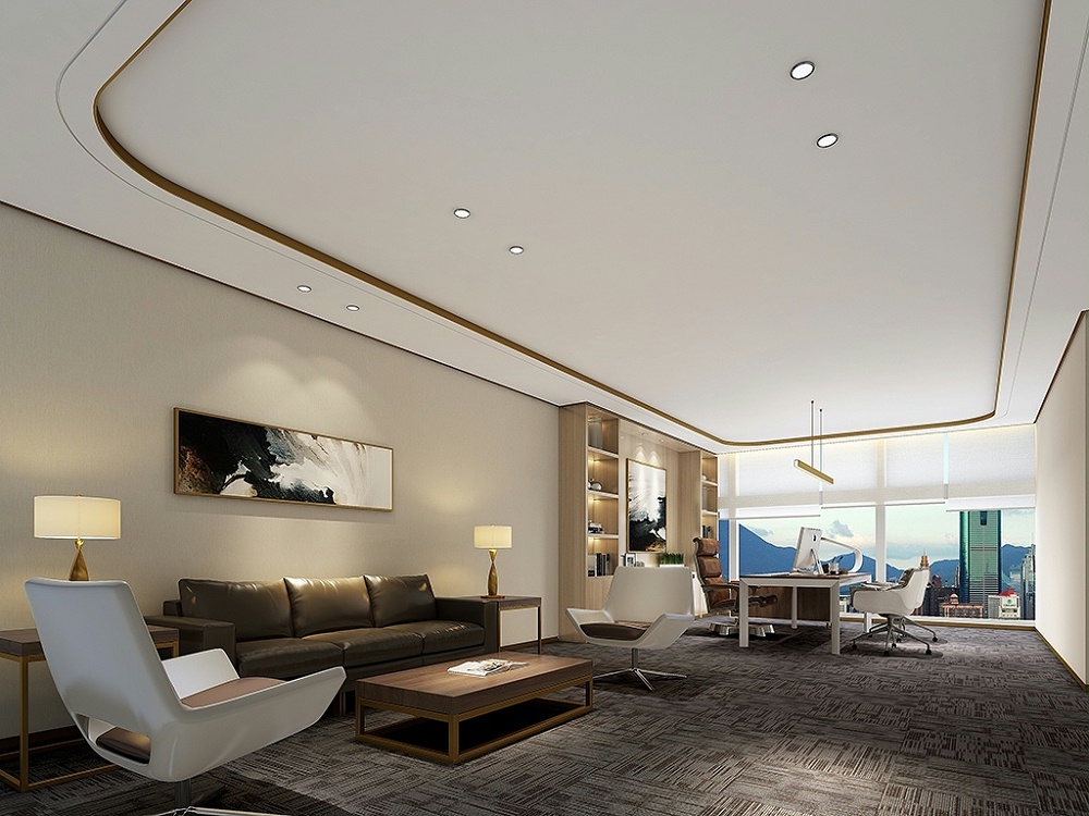辦公室是一種無(wú)聲的語(yǔ)言,代表著公司的形象、品位與實(shí)力!而董事長(zhǎng)作為企業(yè)中的最高領(lǐng)導(dǎo)人,董事長(zhǎng)辦公室裝修 自然不能夠含糊。大大的落地窗更加開闊了辦公室的視野,辦公桌后方的壁畫以及燈光都采用了金色,黑色質(zhì)感的家具,無(wú)不彰顯著主人的高貴身份。