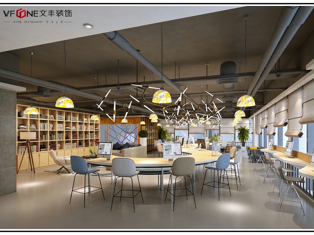 因此設(shè)計(jì)師經(jīng)過一番思索,最后決定在辦公室裝飾上下功夫,整個(gè)辦公室的裝飾更加精致而且追求創(chuàng)新,中和工業(yè)風(fēng)的硬朗。打造一個(gè)兩種風(fēng)格雜糅的辦公室風(fēng)格,達(dá)到創(chuàng)新的效果。